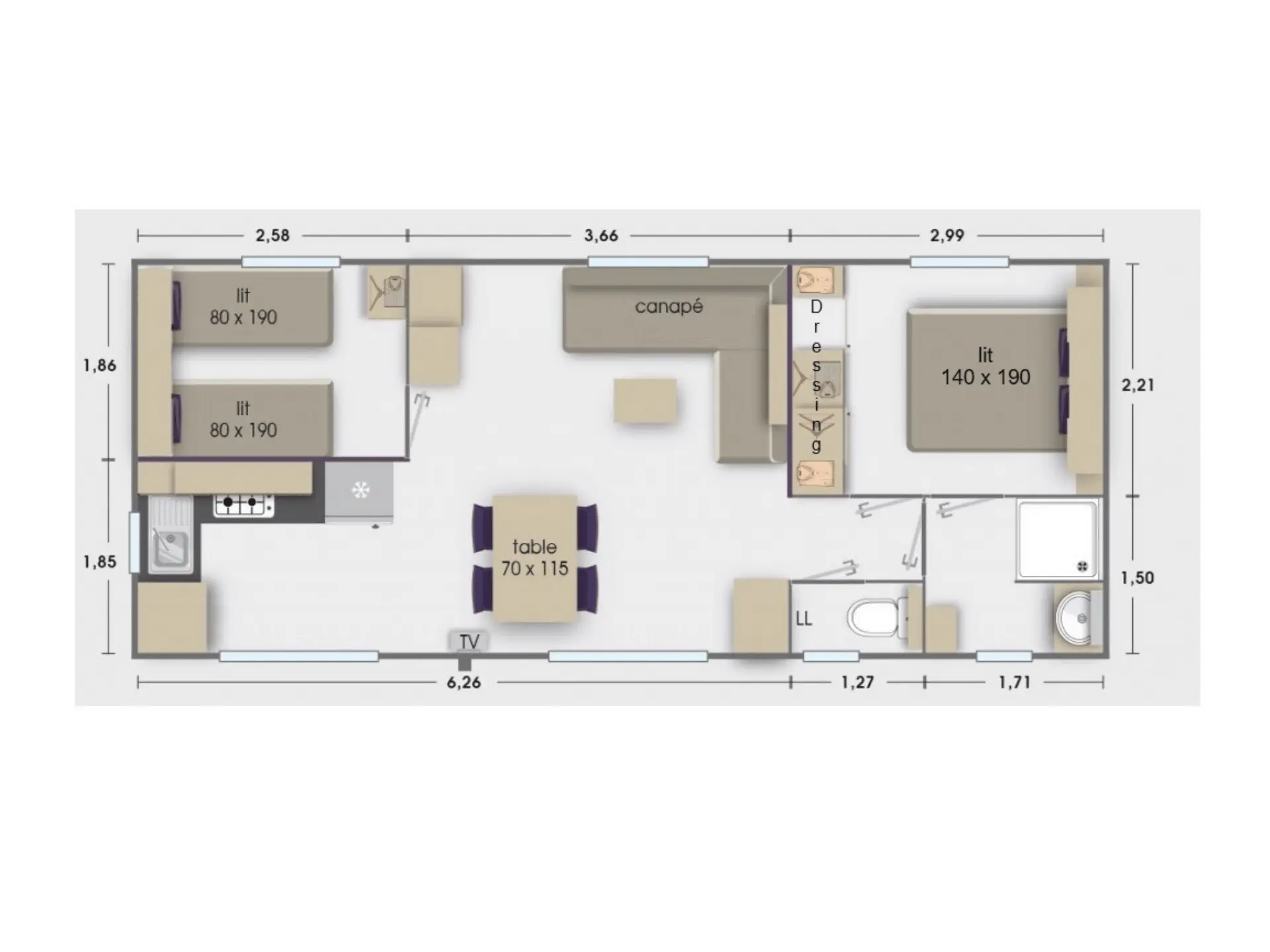 • "Housekeeping" package: cleaning must be done upon departure of the mobile home; if you choose this option, we will do it for you.